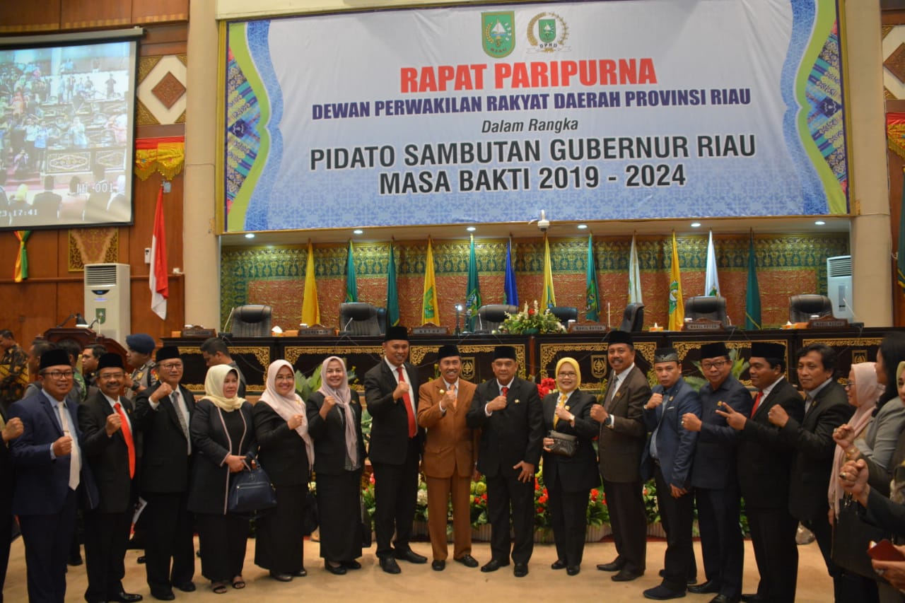 Ket. Foto: Gubri foto bersama usai memberikan sambutan pada Rapat Paripurna DPRD Prov. Riau dalam Rangka Pidato Sambutan Gubernur Riau Masa Jabatan 2019-2024.