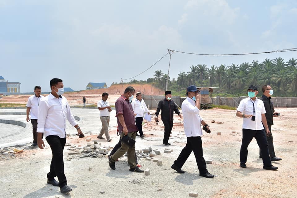 Komisi IV DPRD Pekanbaru melihat progres pembangunan Islamic Center di komplek perkantoran terpadu walikota di Tenayan Raya.