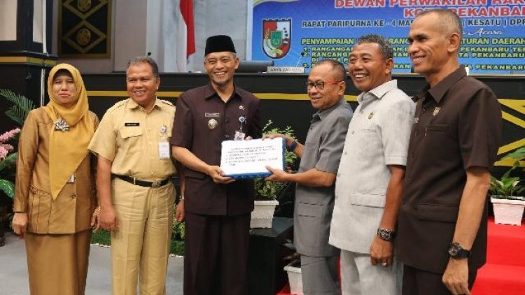 PEKANBARU - Dewan Perwakilan Rakyat Daerah (DPRD) Kota Pekanbaru menggelar rapat paripurna penyampaian 3 rancangan peraturan daerah (Ranperda) oleh Pemerintah Kota Pekanbaru, Senin (04/03/2019).