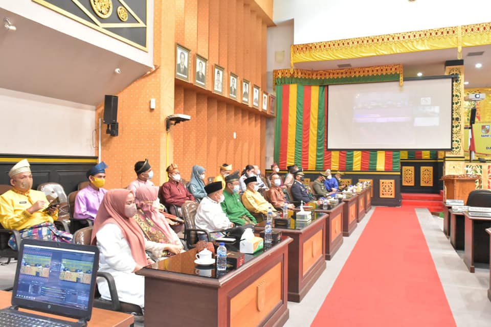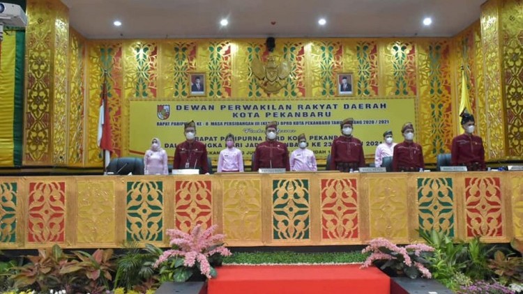 PEKANBARU - DPRD Pekanbaru menggelar rapat paripurna istimewa dalam rangka memperingati Hari Ulang Tahun (HUT) Kota Pekanbaru ke-237 pada Rabu (23/6/2021). Rapat ini sendiri berlangsung sesuai dengan Protokol Kesehatan (Prokes) Covid-19 dengan undangan peserta terbatas dan juga diikuti secara virtual.